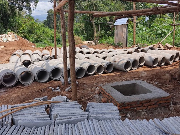 Currently, at the Jesuit Community compound, the site development work is in progress, transforming the surroundings into a serene sanctuary. The rich loamy soil has been diligently compacted to ensure the stability of the house’s foundation, while concrete paths, extending 1.2m from the walls, are being crafted to enhance the walkways. These pathways will be equipped with ditches to facilitate efficient water drainage. Furthermore, the need for creating ditches around the compound arose from the unique characteristics of the landscape.