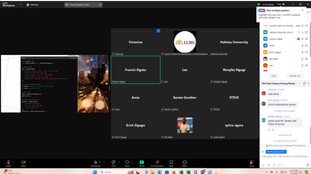 On Wednesday, 3rd July 2024, the closing workshop for the Professional Certificate in Data Science by the proposed Hekima University (PHU) marked a significant milestone as participants showcased the outcomes of their projects via an online platform. The Professional Certificate Course in Data Science commenced on Monday, 2nd October 2023, at Hekima University College.