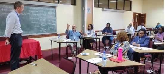 Fr. Dr. Odomaro Mubangizi, SJ facilitating a class on Faith and Finances at Baraka Agricultural College in Molo.