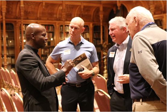 Provincial, Fr. Kizito Kiyimba discussing with participants at Saint Ignatius College Prep in Chicago.